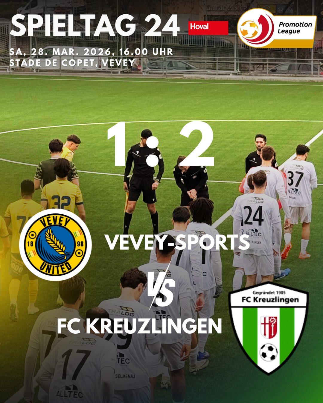 Der FC Kreuzlingen sichert sich in einem intensiven und umkämpften Spiel auswärts bei Vevey-Sports einen wichtigen 2:1-Erfolg – und das unter alles andere als einfachen Bedingungen.