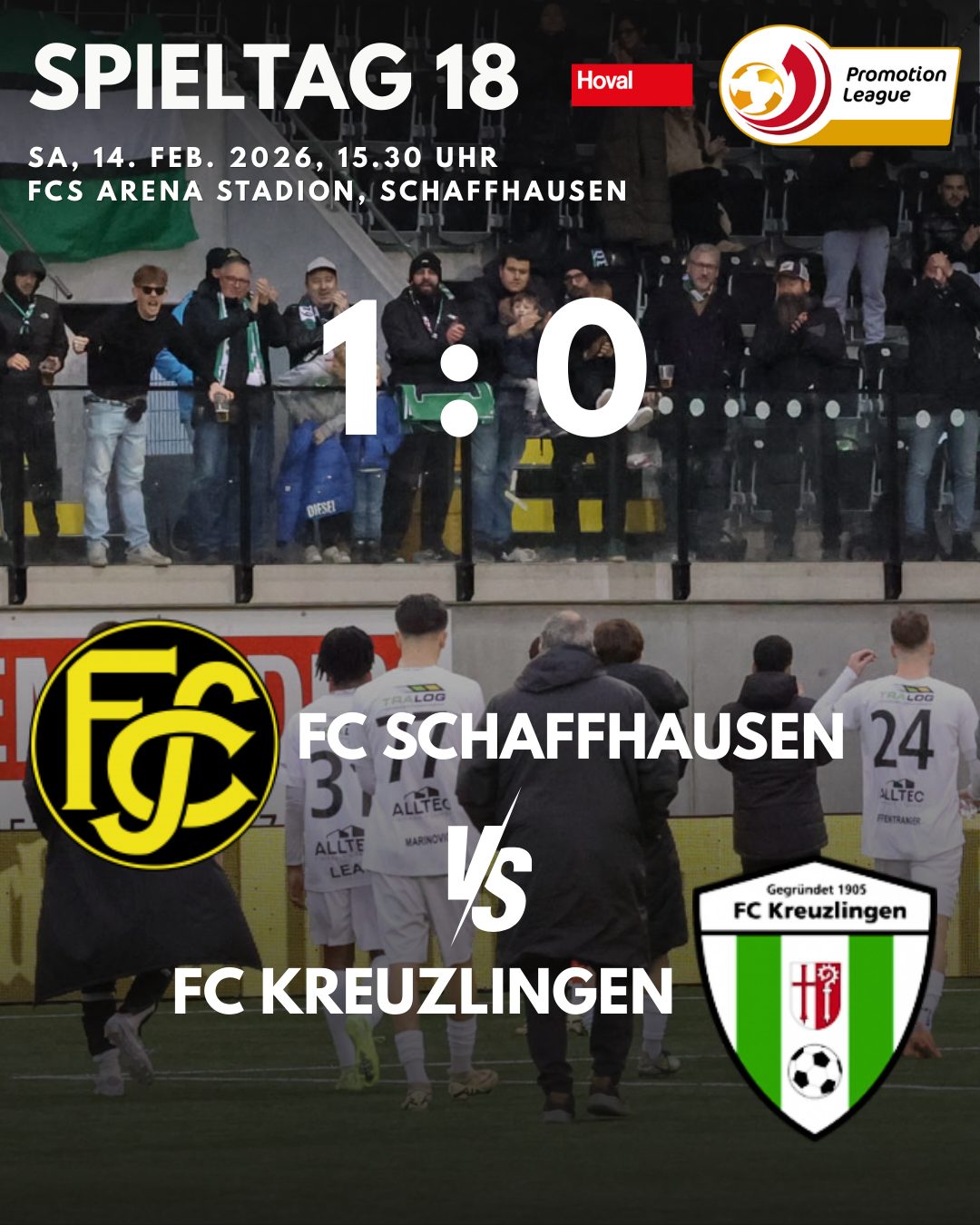 Der FC Kreuzlingen lieferte zum Auftakt der Rückrunde in der Hoval Promotion einen überzeugenden Auftritt ab und verlangte dem favorisierten FC Schaffhausen über die gesamte Spielzeit alles ab. Trotz einer starken Leistung musste sich Kreuzlingen am Ende durch einen glücklichen Treffer knapp mit 0:1 geschlagen geben.